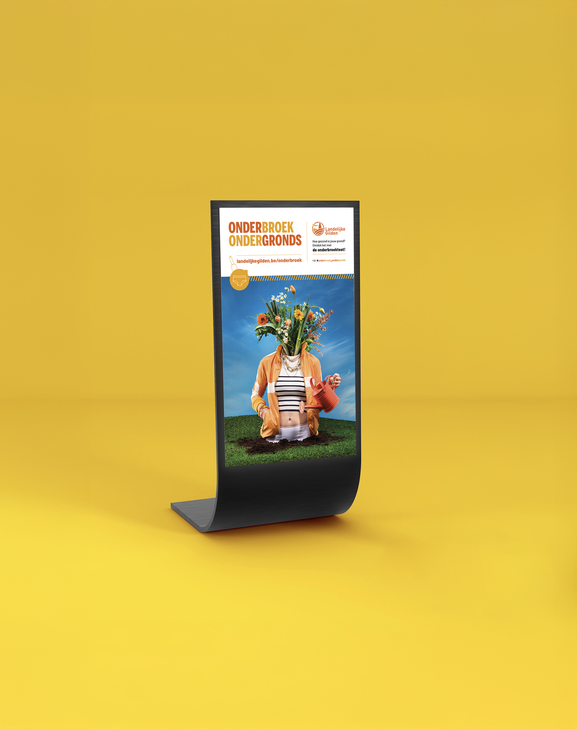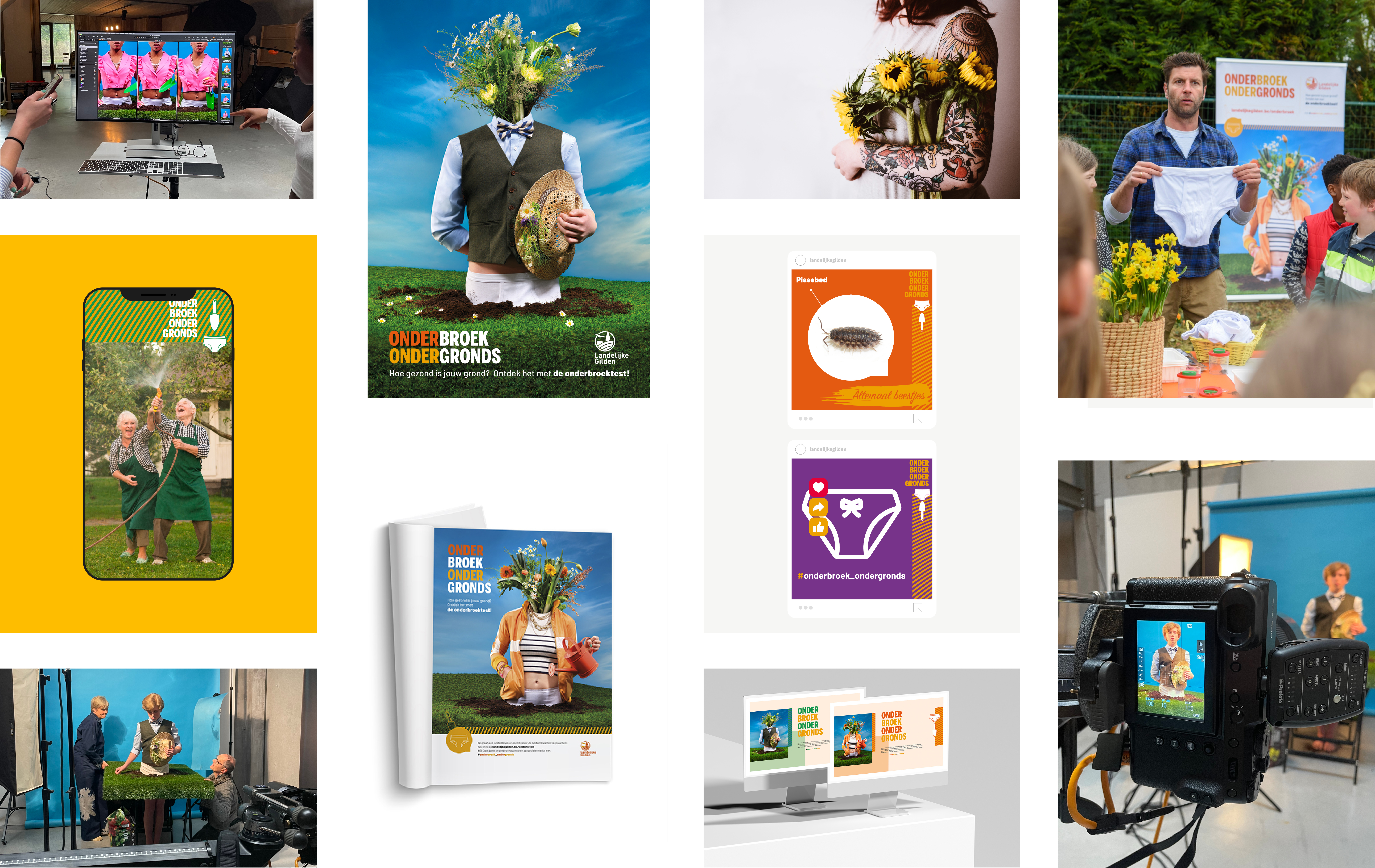 "ONDERBROEK ONDERGRONDS", de slogan van deze sensibiliseringscampagne voor bodemonderzoek was de eerste stap in een creatief en strategisch traject met als doel ‘deelnemers betrekken bij een uniek experiment waarbij katoenen onderbroeken werden begraven om de gezondheid van de bodem te testen’. Een speelse en effectieve manier om bewustwording te creëren. Om de boodschap op een opvallend visuele manier het land in te sturen ontwikkelden we creatieve visuals die het campagneverhaal verhaalden. Deze beelden werden breed ingezet voor print, web en televisie, met bekende BV’s zoals Bartel Van Riet om de campagne extra kracht bij te zetten. Ook kreeg de campagne zichtbaarheid in het tv-programma ‘De tafel van Gert. Ook werd een digitale contentstrategie uitgewerkt met herkenbare vormgeving en gerichte advertenties in relevante media, waardoor een breed publiek werd bereikt. Dankzij de combinatie van creatieve storytelling en strategische marketing wist deze nationale campagne tal van mensen te sensibiliseren.